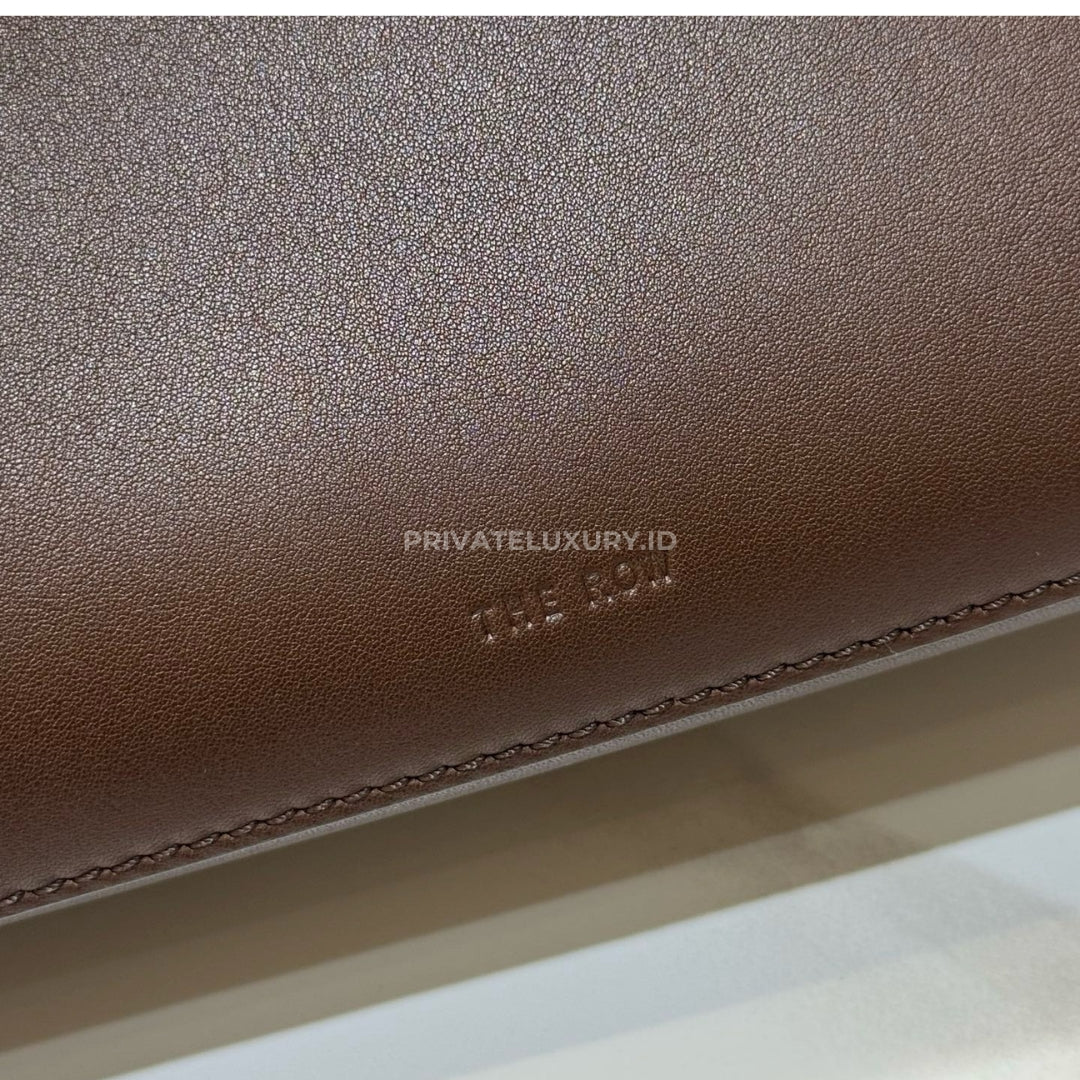 ASK VIA WHATSAPP JOIN TELEGRAMGeometric shoulder bag in polished saddle leather with tubular handles, flat base, and hand-stitched construction.