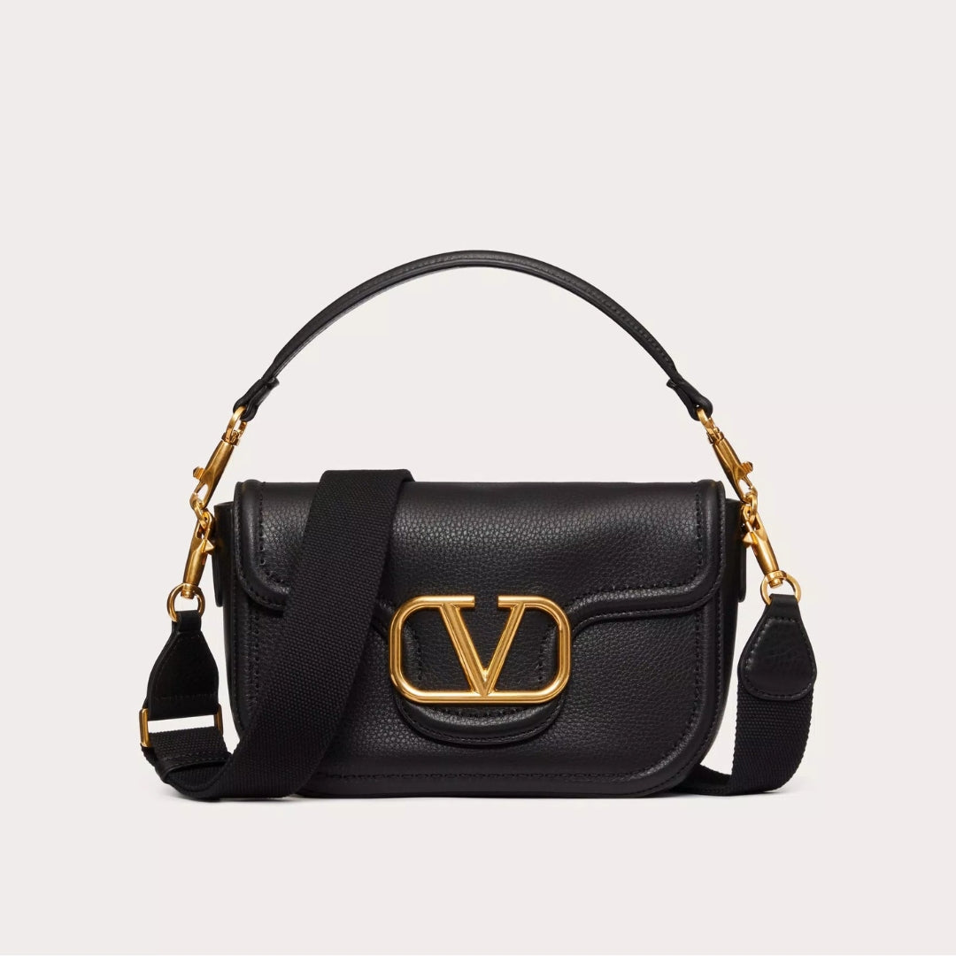 ASK VIA WHATSAPP JOIN TELEGRAMValentino Garavani Alltime shoulder bag in soft grainy calfskin leather with metallic VLogo Signature detail. The bag can be worn on the shoulder/cross-body or handheld thanks to the removable handle and removable ribbon shoulder strap.