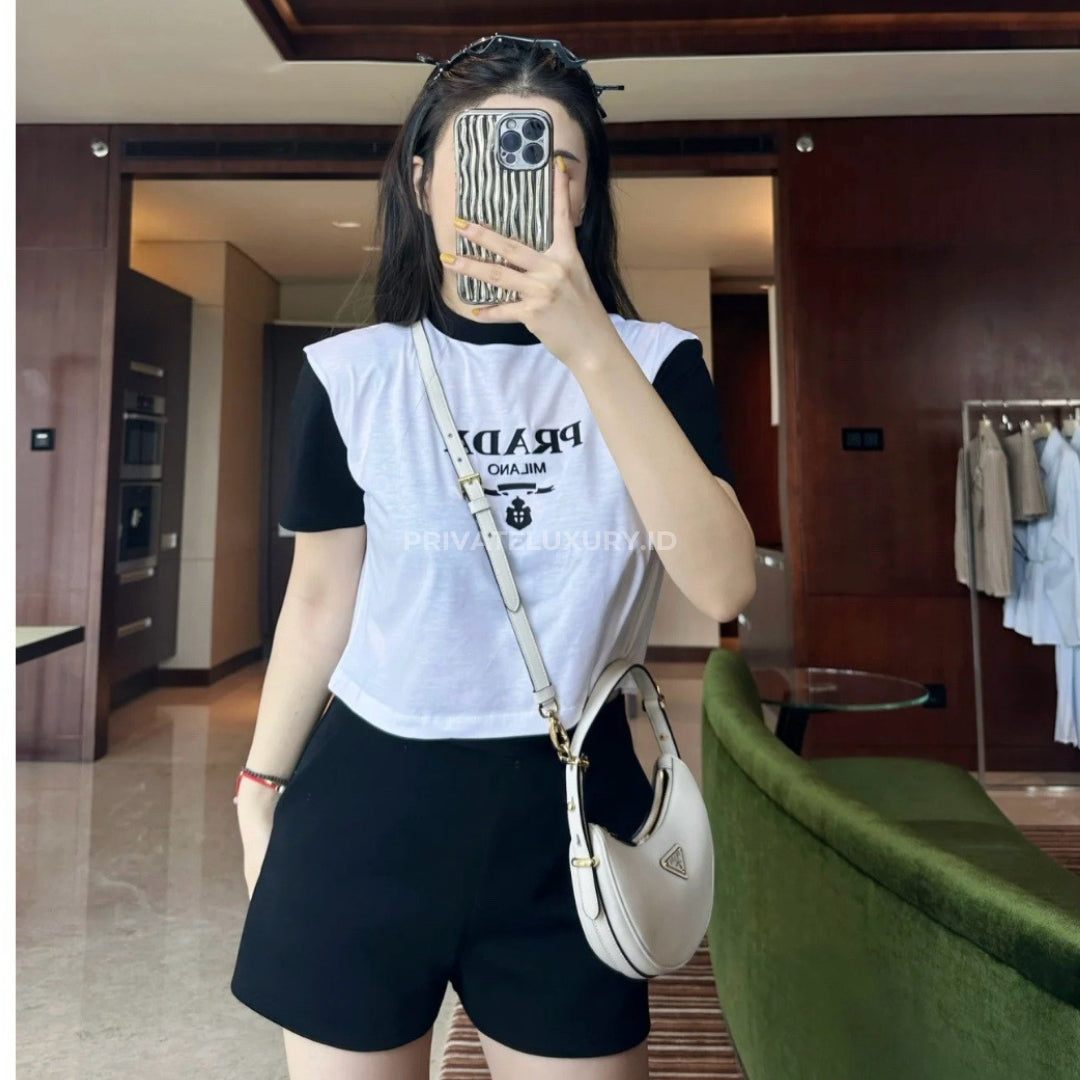 ASK VIA WHATSAPP JOIN TELEGRAMThis sleek leather bag expresses versatile, modernist allure. The accessory with a curvy silhouette is completed by the leather extension for versatile wear. With a nappa leather lining and metal hardware, the bag is accented with the iconic enameled metal triangle logo on the front.