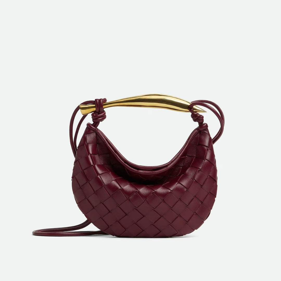 • Baby Intrecciato leather cross-body bag with metallic top handle