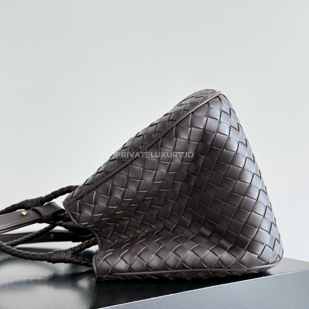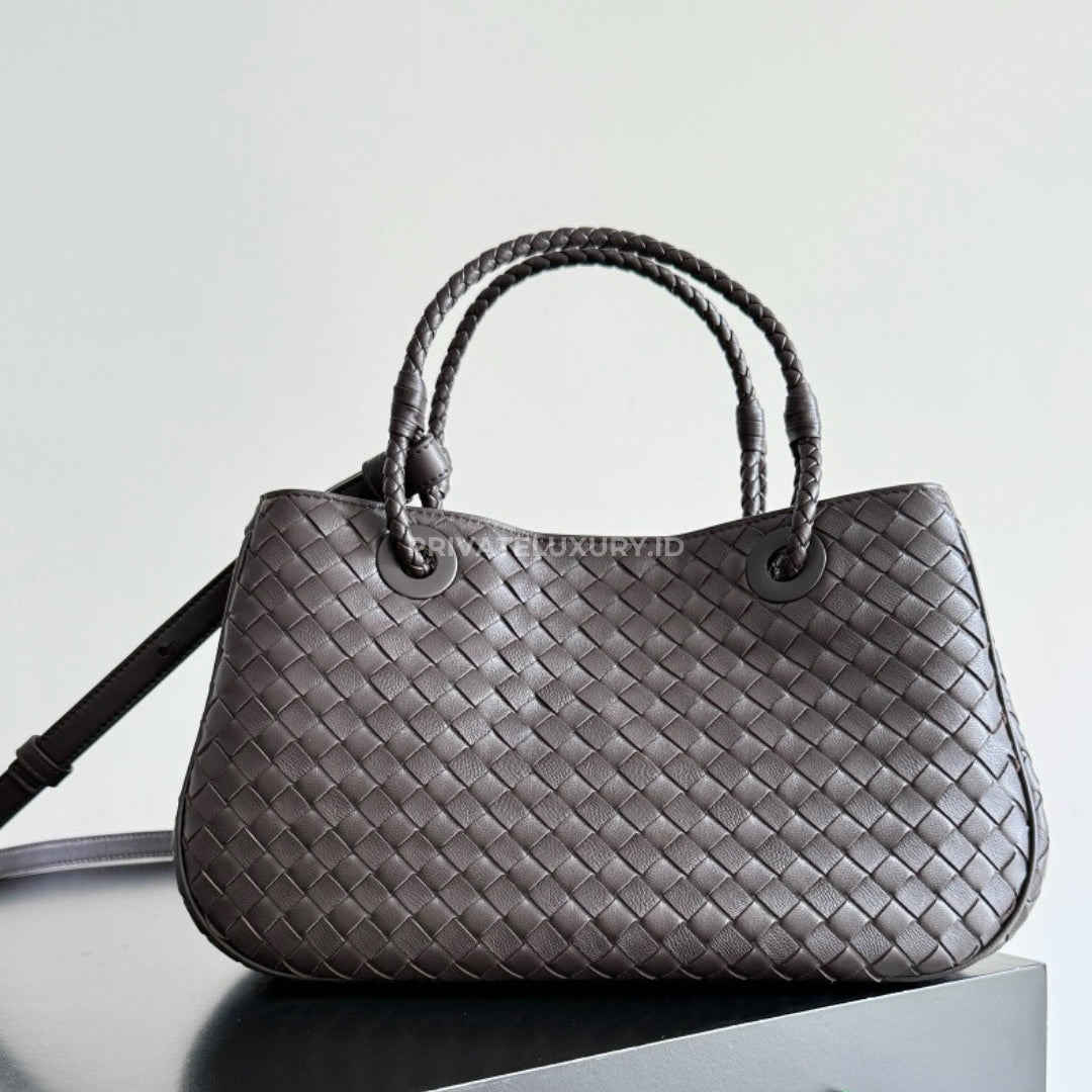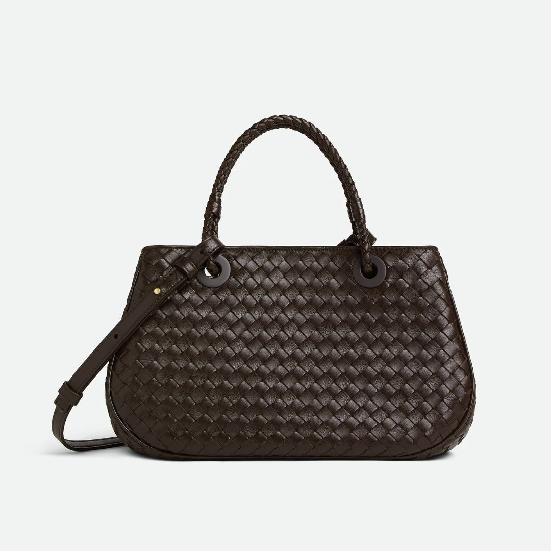 • Intrecciato leather basket bag with signature coaxial handles