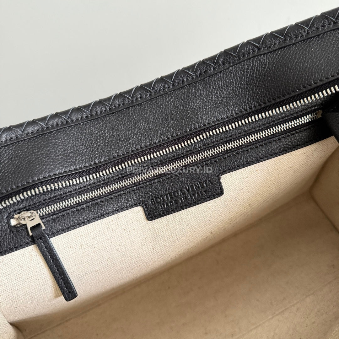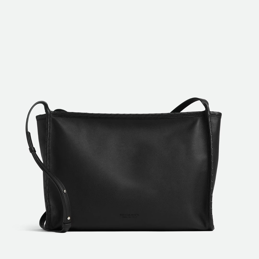 • Leather zipped messenger with Intrecciato piping