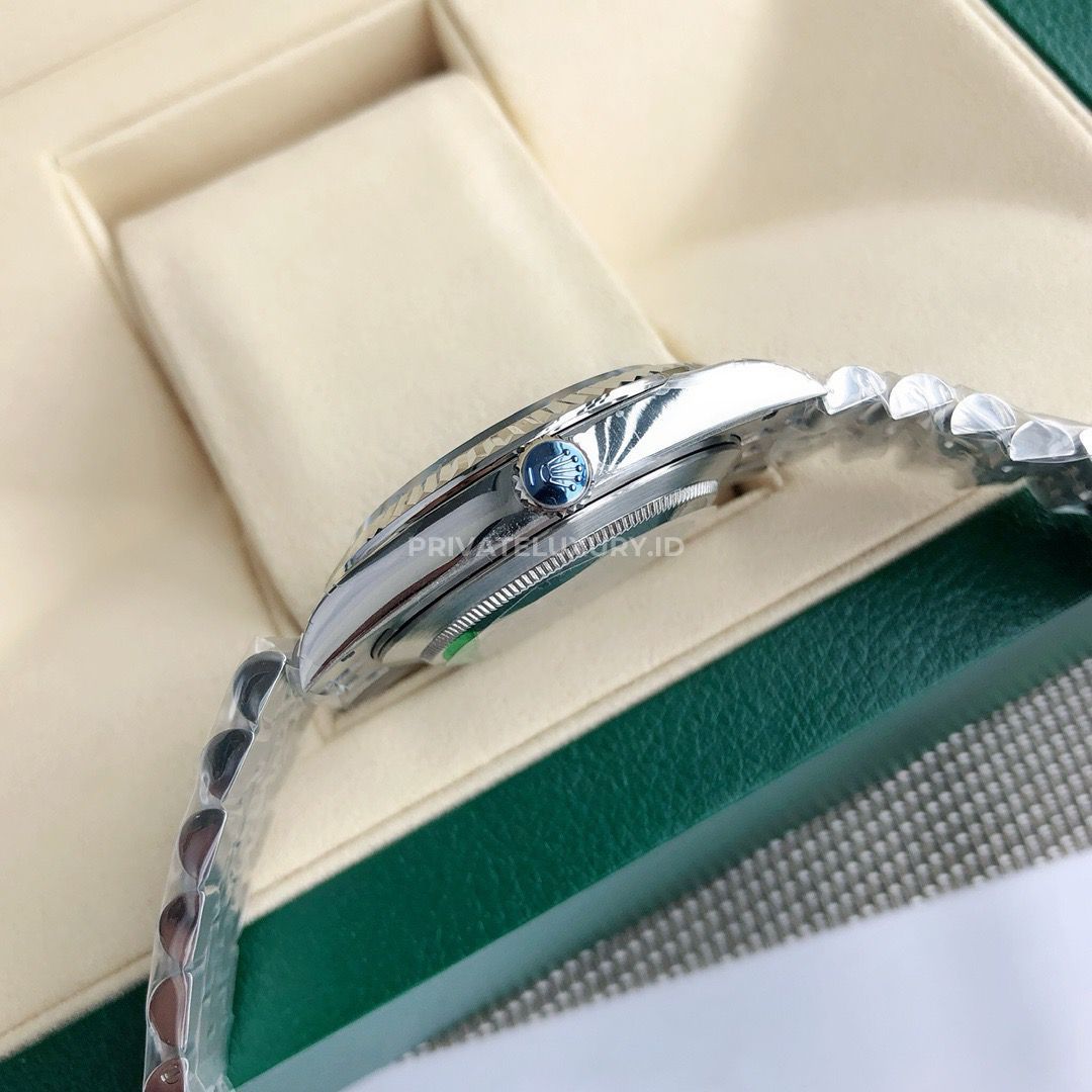 The mechanical self-winding movement is powered by the Calibre 3235 with 70 hours of power reserve, making it a reliable timepiece. Fitted in an oystersteel jubilee bracelet with a folding oysterclasp and water resistance up to 100 meters.