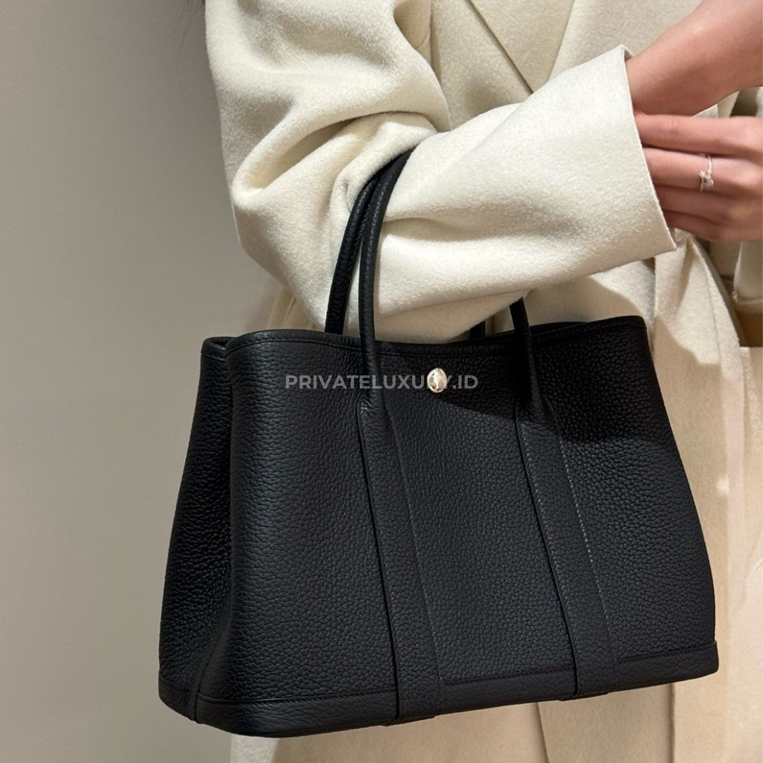 ASK VIA WHATSAPP JOIN TELEGRAMThis is an Hermes Garden Party 30 This sophisticated tote is crafted of grained calfskin leather. It features rolled top handles, expandable sides, and silver hardware. The top is open to a herringbone fabric interior with a zip pocket. This is a perfect everyday tote, from Hermes!