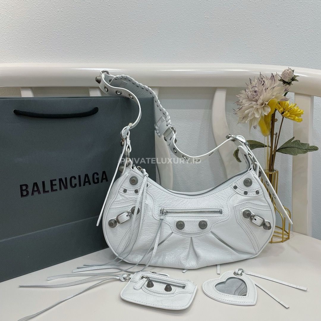 ASK VIA WHATSAPP JOIN TELEGRAMLe Cagole Small Shoulder Bag in Arena lambskin, aged-silver hardware.