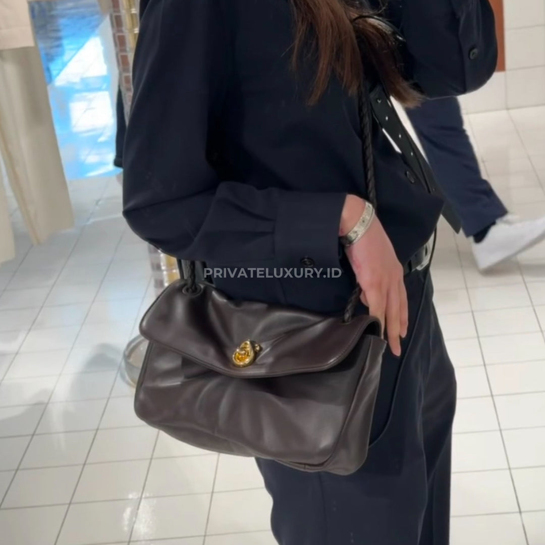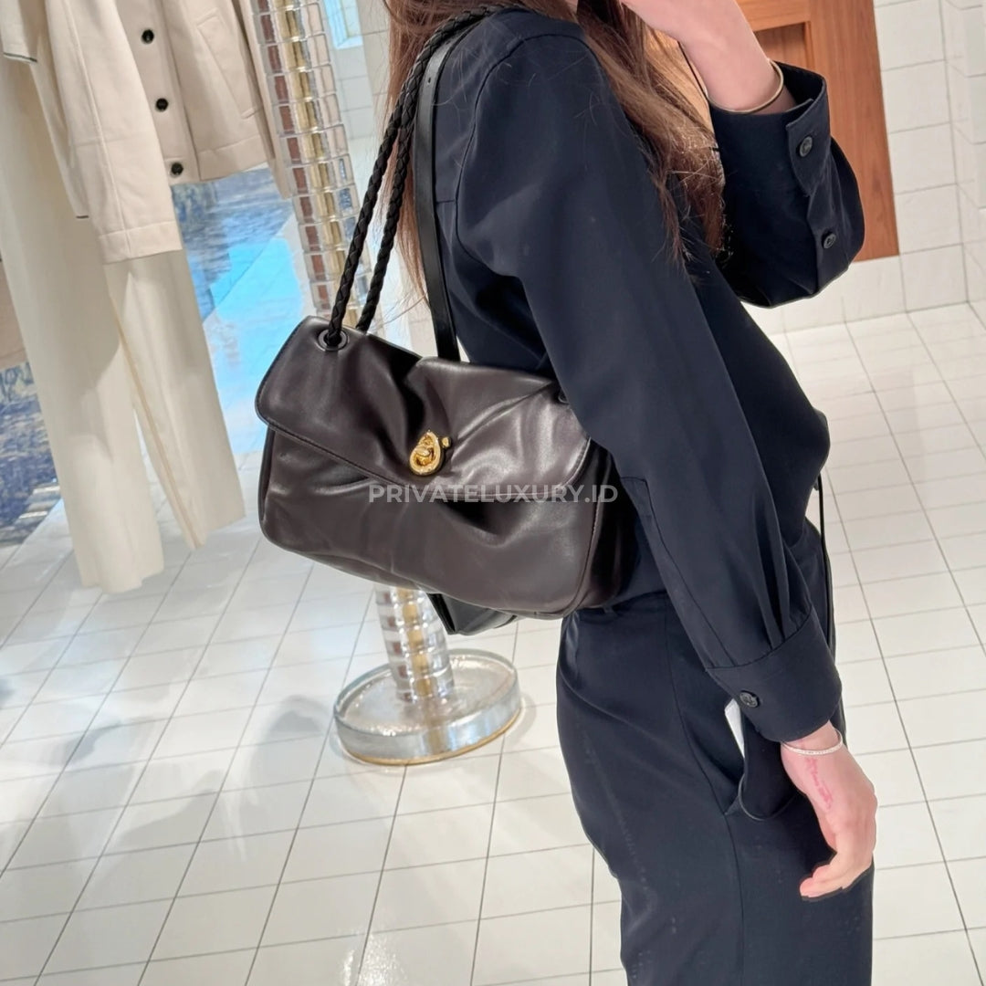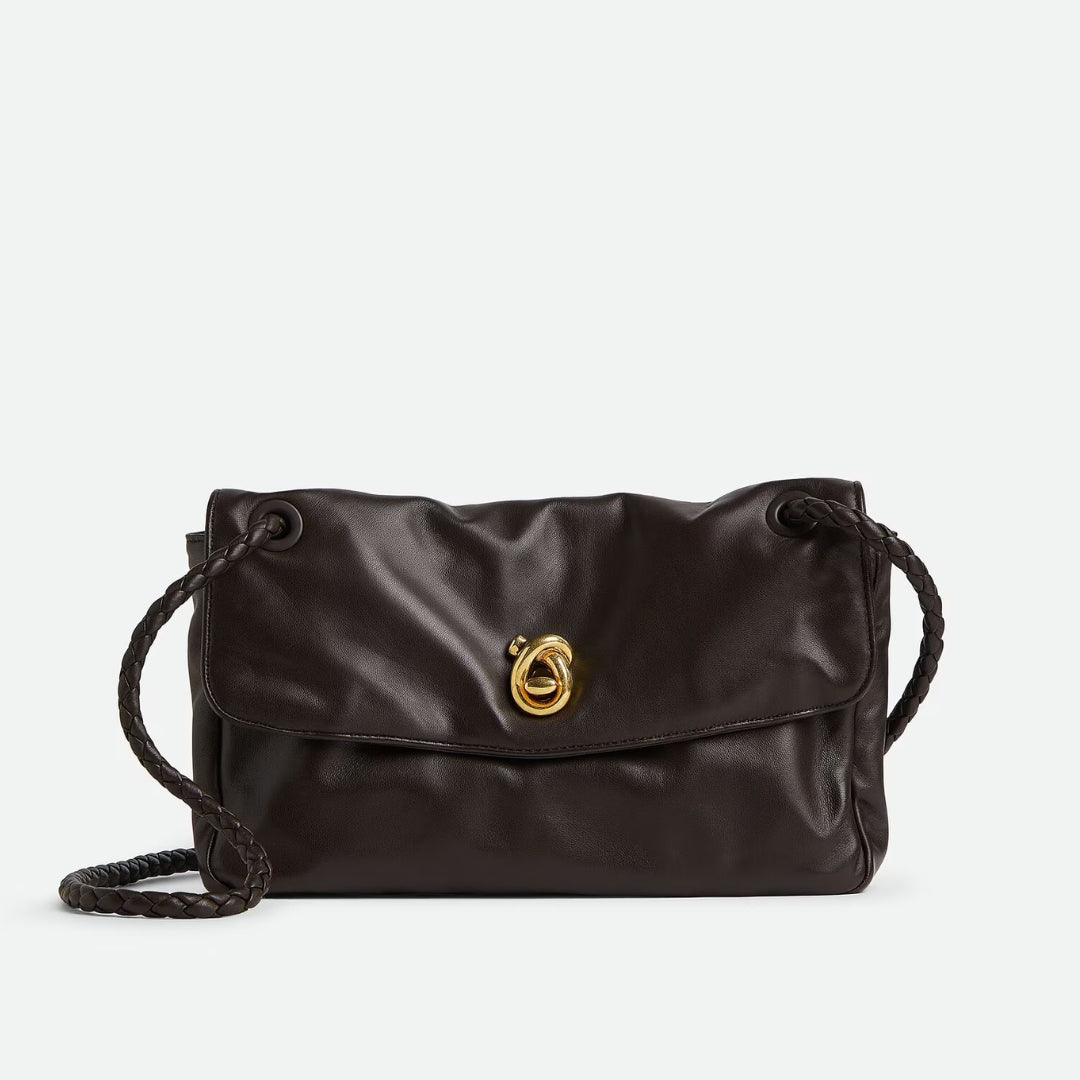 ASK VIA WHATSAPP JOIN TELEGRAMShoulder bag in supple lambskin with malleable memory flap, sculptural knot closure, and sliding cross-body strap.