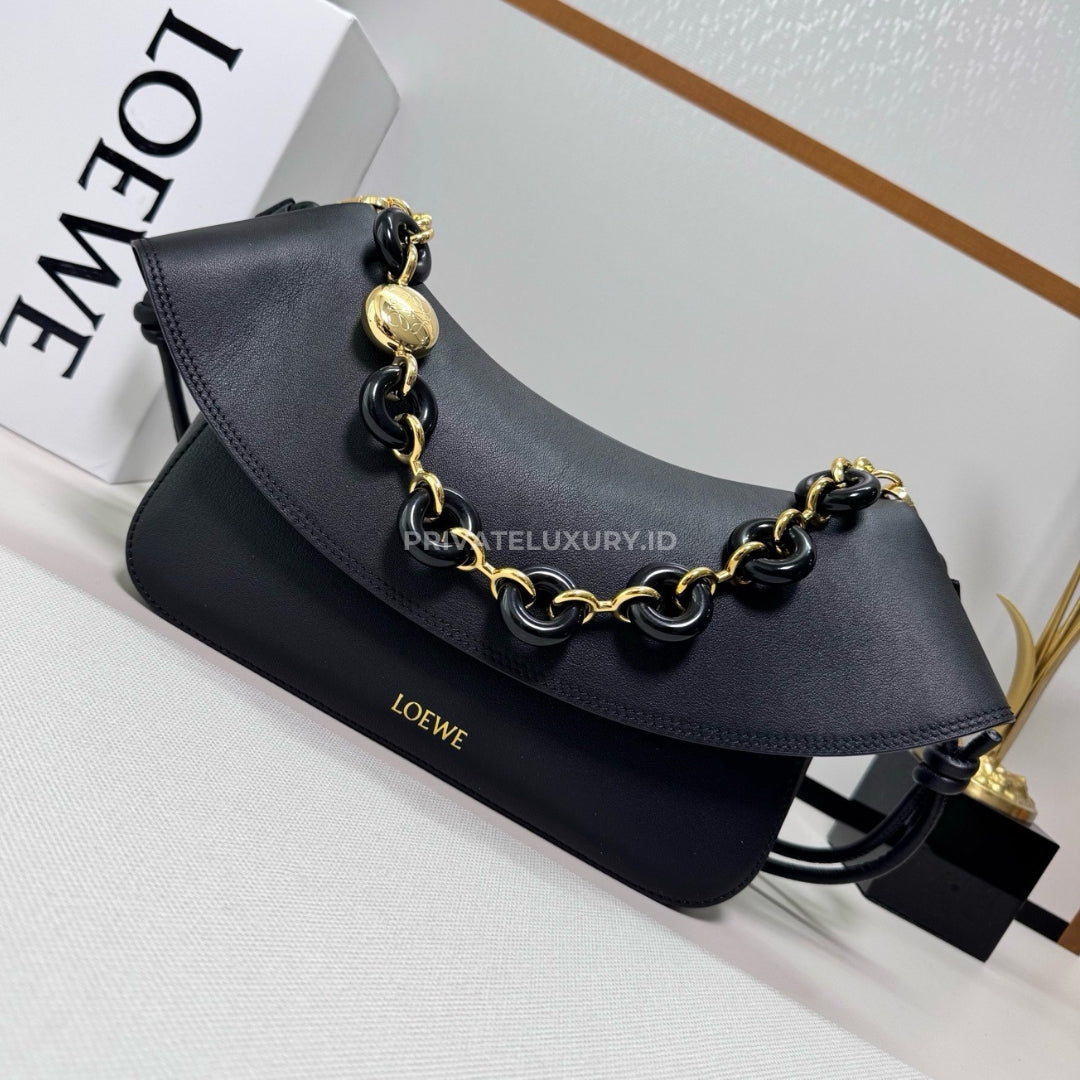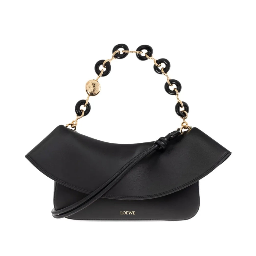 ASK VIA WHATSAPP JOIN TELEGRAMFounded in 1846 as a leathermaking company, Loewe maintains a commitment to art and craft of the utmost quality. Made from black leather, the Ola Medium shoulder bag features two detachable straps, one gold-toned, donut chain, and another thin, knotted strap.