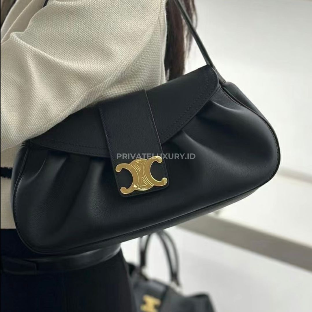 - Flap in leather with a Triomphe magnetic closure