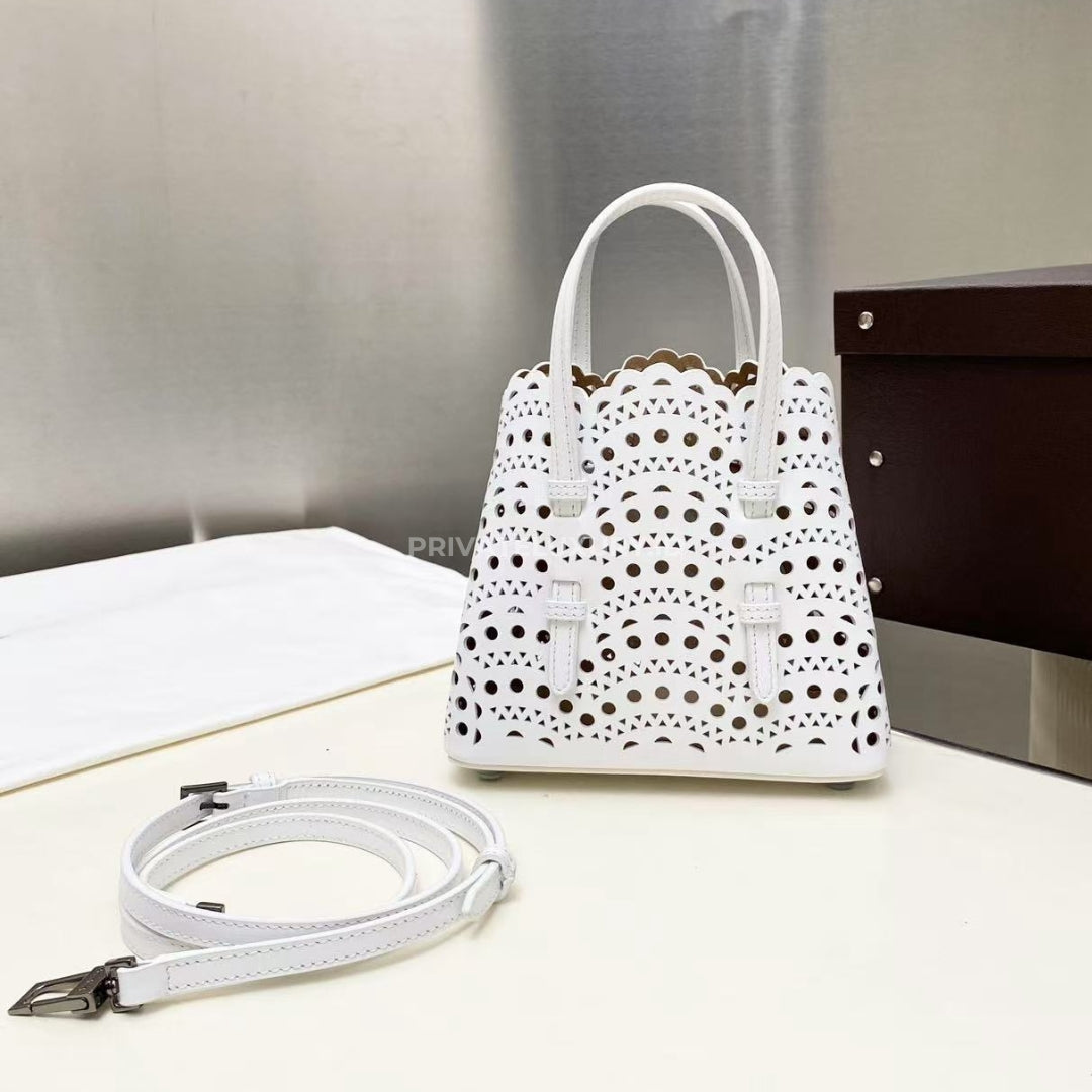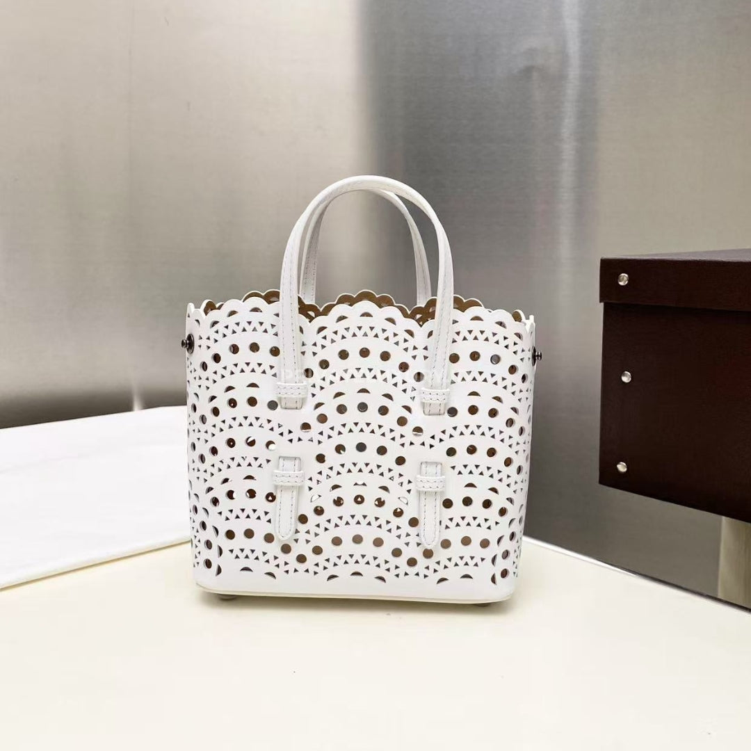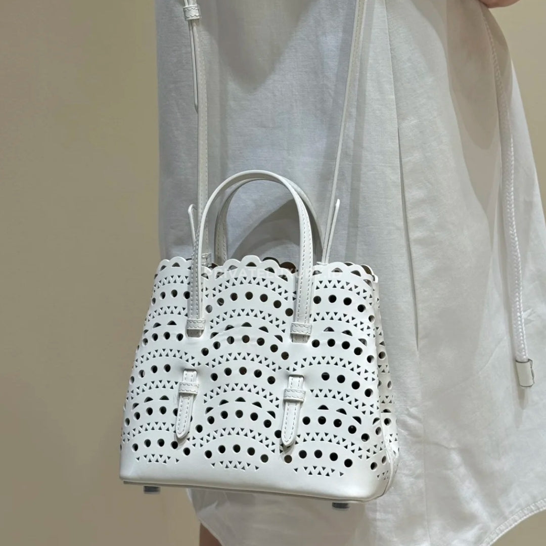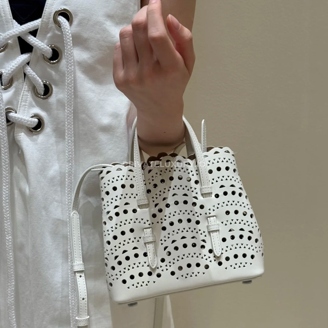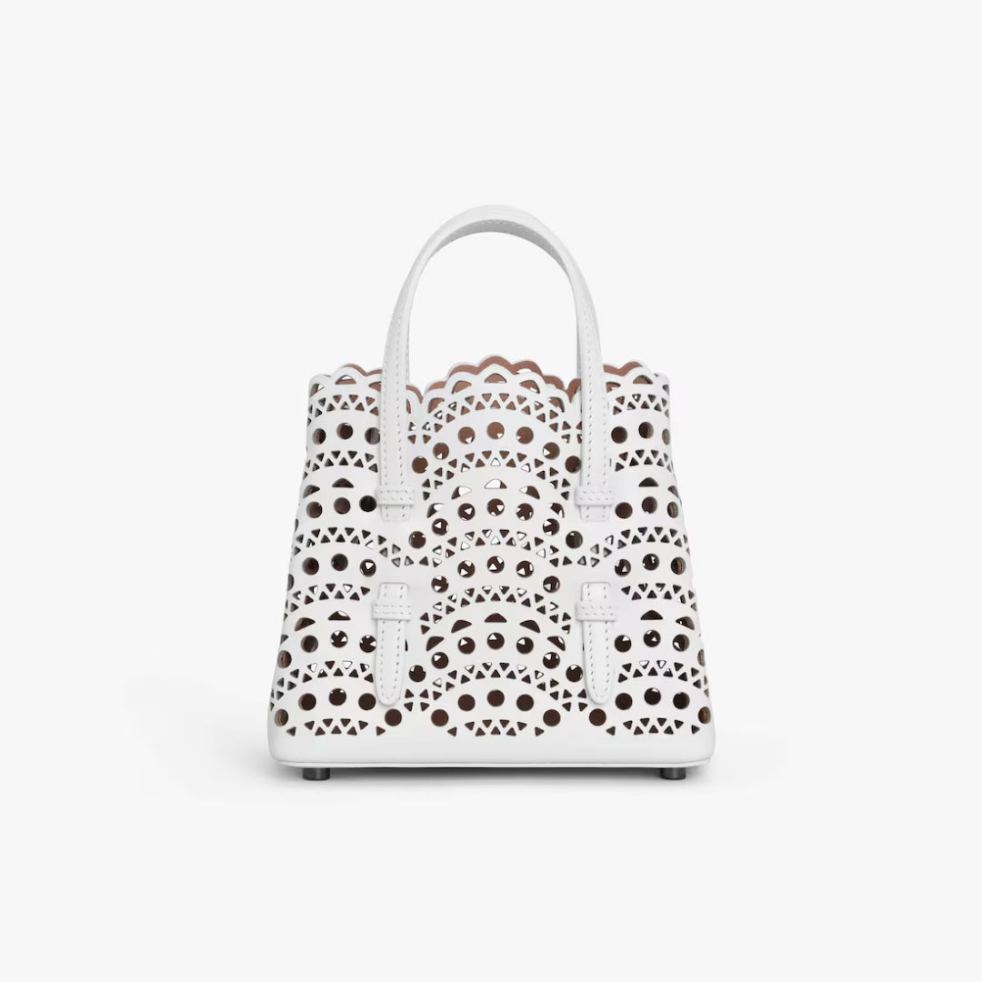 ASK VIA WHATSAPP JOIN TELEGRAMMicro tote bag, vienne pattern inspired by precious lace and moucharabieh architectural openwork, snap-fastening gusseted sides that expand, galvanised silver hardware, detachable strap, hand or shoulder carry.