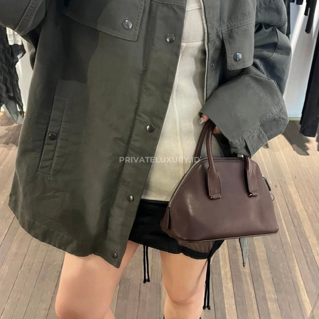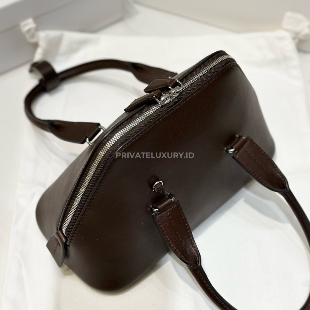 ASK VIA WHATSAPP JOIN TELEGRAMCompact structured top handle bag in smooth lightweight nappa leather with top zipper closure, hidden shoulder strap, and decorative stitching detail.