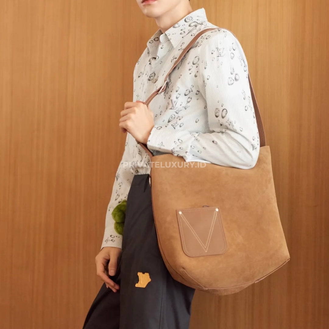 ASK VIA WHATSAPP JOIN TELEGRAMThe Verso Hobo in LV Touch calfskin leather blends style and versatility. Its reversible design offers two distinct looks: smooth grained leather on one side, and matching-colored suede on the other. Each side features a pocket with a discreet stitched V signature, while a removable suede pouch adds extra functionality.
